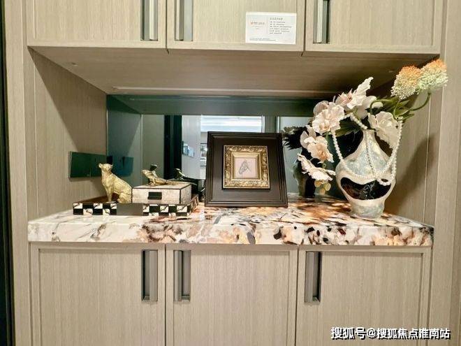 玄关处的柜台面,精选了产自巴西的雪山飞狐奢石。该奢石因其非凡的美感与卓越品质,深受青睐,常用于高端家居及商业空间的装饰。✅✅越秀杨浦天玥售楼处电话:400-8567-004✅✅雪山飞狐奢石所呈现的黑白相间的纹理以及其中均匀散布的水晶颗粒,为周遭环境赋予了别具一格的美学意蕴。