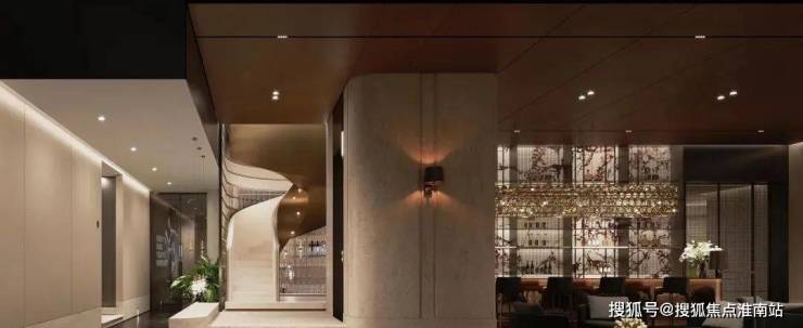 社区入口打造隐奢门庭,酒店式落客区,水景、精致幕墙等私享尊荣。社区大门臻选古琦黑奢石,手工打磨,做成连续的弧形幕墙,在细节上把珠宝的工艺应用住宅建造中。