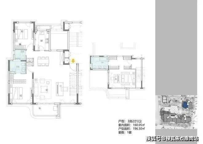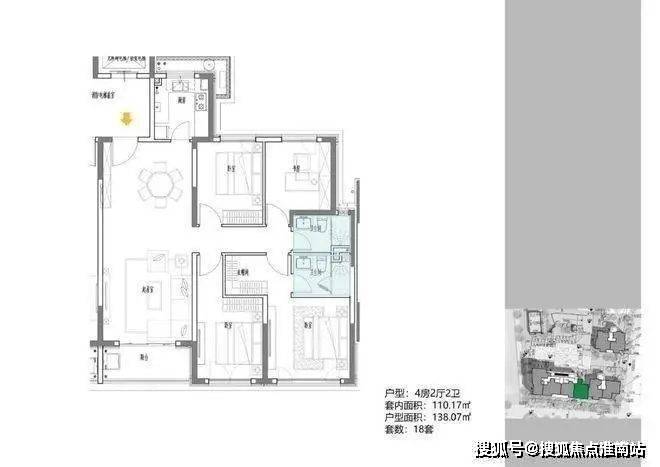 3地块容积率2.33,由一栋18层的小高层和两栋6层的花园洋房组成,共92套房源,产品建面约108-196㎡.