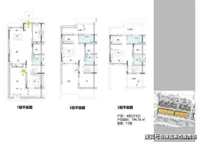 其中,A地块:5-8F洋房,3层别墅产品;建面约98-199m²洋房、约197m²联排;