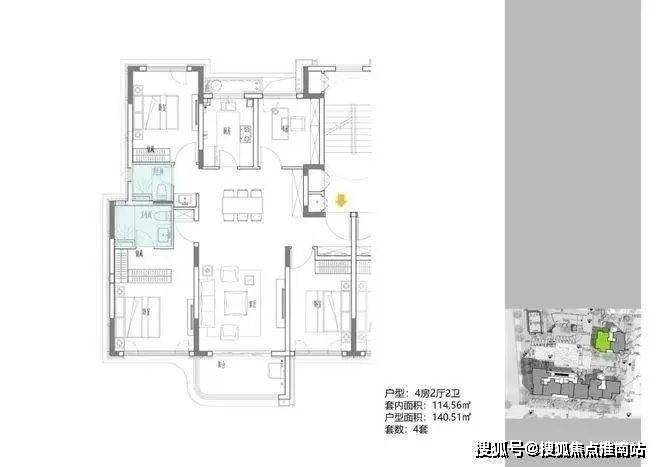2地块容积率2.94,只有一栋小高层,共67套房源,产品建面约108-148㎡.