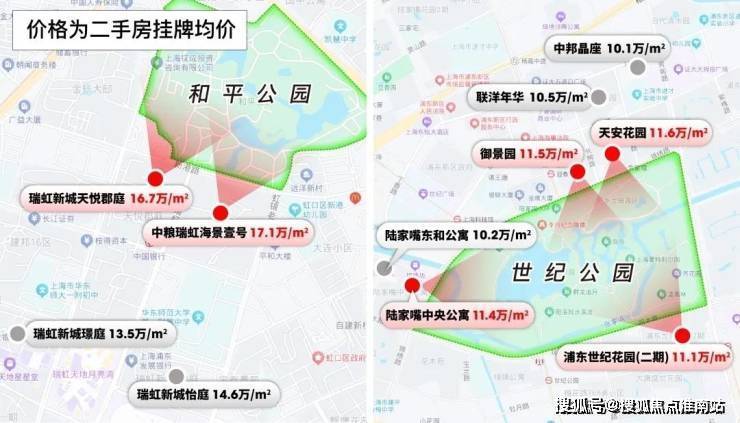 首先,中粮瑞虹海景壹号位于内环内,目前的挂牌均价约17.2万/㎡,最低挂牌总价约2399万,几乎是翎翠滨江的两倍有余。