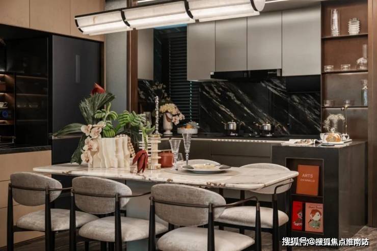 另外一方面,客卫的移位释放了大量的空间,放大了翎翠滨江餐厅、厨房,尺度感、通透性极强,并且做到了几乎0空间浪费。