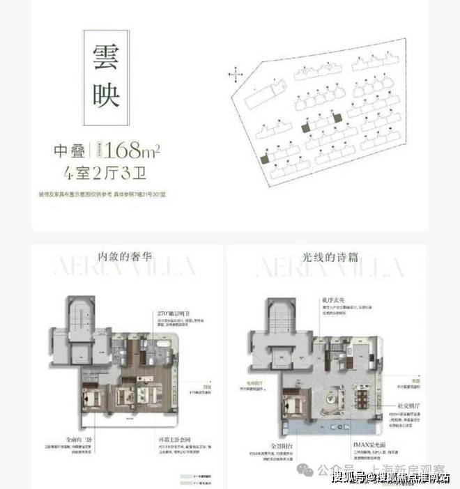 整个项目容积率仅约 1.5 ,远低于常规住宅项目,规划了 叠墅和小高层 两类产品,建筑布局充分考量视野与私密性,确保每家 每户都能享受充足的采光与景观资源。