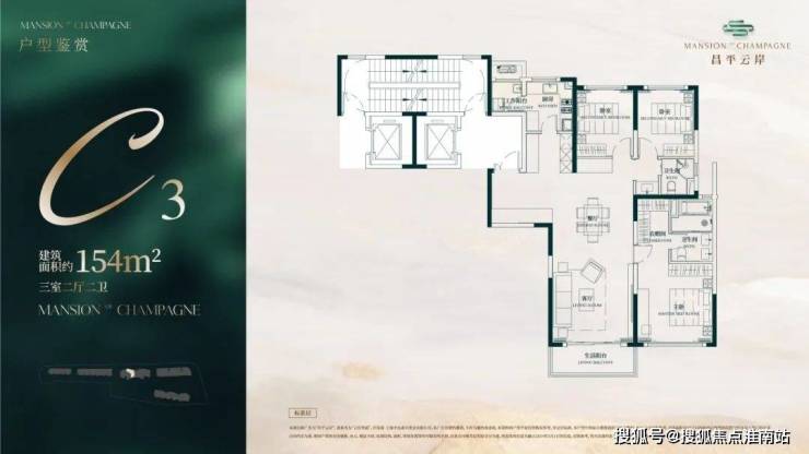 约154㎡做了大三房设计,空间相当奢阔!主卧套房设计尊崇感十足!