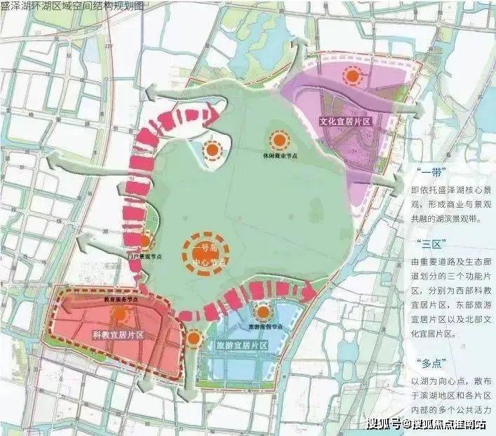 根据盛泽湖片区发布的规划,盛泽湖环湖区域将建设成集休闲娱乐、旅游度假、居住商业等功能于一体的5A景区和现代都市宜居住区。包括西部科教宜居片区、东部旅游宜居片区、北部文化宜居片区等三大片区。