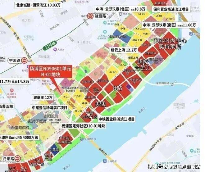 地块北侧,去年11月28日,保利发展&上海建工以总价28.71亿拿下杨浦区N090601单元I5-01地块,楼面价81960元/㎡,溢价率17.09%.项目案名保利·海玥外滩序BUND98,于今年5月中旬首开,两次开盘认购率均超过200%,整盘成交均价约12.7万/㎡.