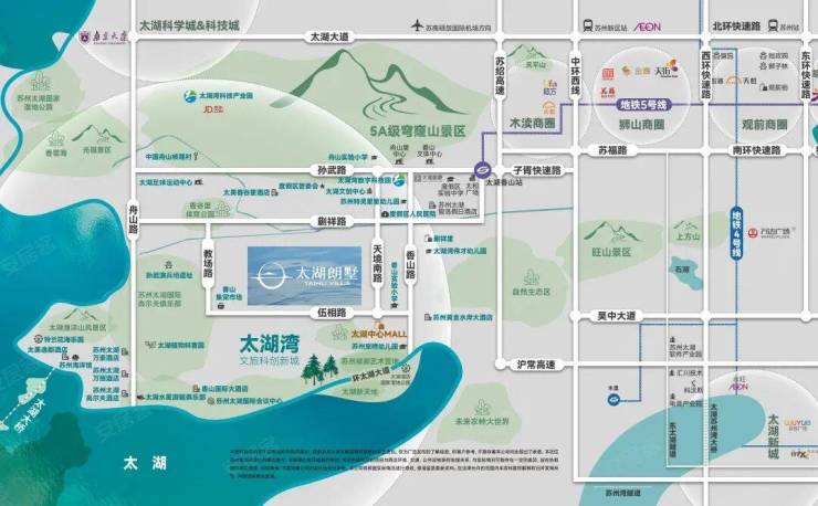 太湖朗墅售楼处(营销中心)位于江苏省苏州市吴中区伍相路与天镜南路交汇处。