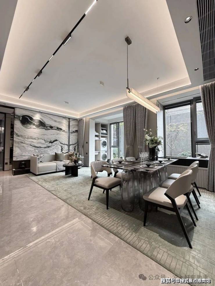 立面腰线等细节处则提炼汝窑“金线”传奇符号,以还原精雅的繁复工艺,为建筑线条进行金线勾边,点睛强烈而隽永的美学仪式感;较高的窗墙比延伸视野边界的同时,呈现极简派超高颜值…诸如此类的精工细节不胜枚举,真正做到了坚持骨子里东方文化标签,用现代材料与传统技法相结合,打造出符合现代审美需求的高质人居产品。