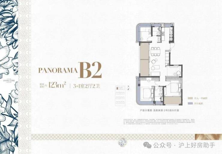 建面约123㎡3+1房户型
