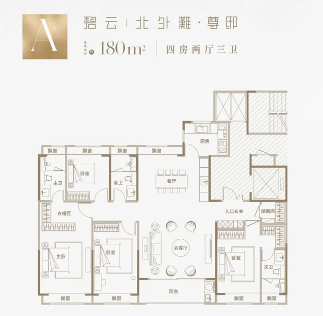 主力在售:235㎡四房三卫(少量180/215㎡已基本售罄)