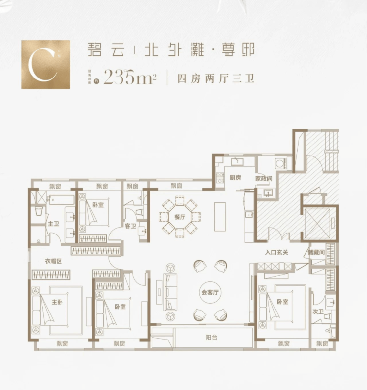 那么实际居住体验如何,我们可以参考已开放的建面约235㎡样板间: