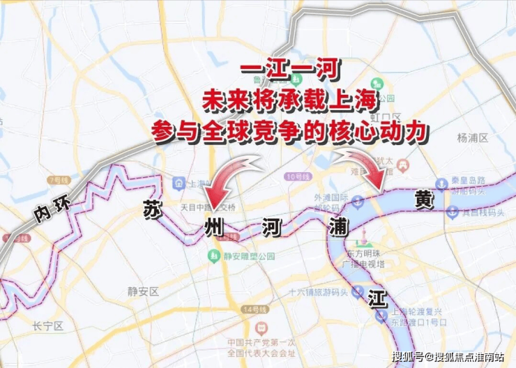 在静安、闸北合并之后,这片土地的城市更新速度加快,苏河湾板块在2016年的苏河湾十三五规划期间,将目标定位:“要重新拿回上海‘都市之心’的宝座”,在随后的“2035规划”中,苏河湾更是被布局为世界级中央活动区,未来将是城市封面的存在。苏州河站位“一江一河”规划,对于上海来说,未来苏州河沿岸应当是比黄浦江更适宜居住的存在。