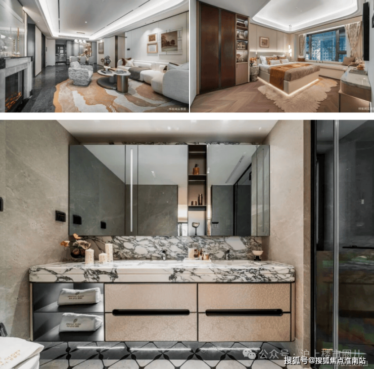 此外,室内装标同频半亿级豪宅(指单套总价半亿,下同)标准,配备嘉格纳六件套厨电(含油烟机、灶具、蒸烤一体机、洗碗机及双开门冰箱);劳芬双台盆/三折叠美妆镜柜组成的行政套房级主卫系统,并搭载华为全屋智能控制系统。