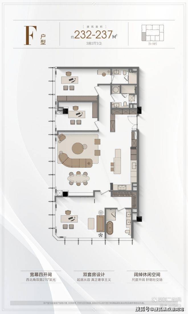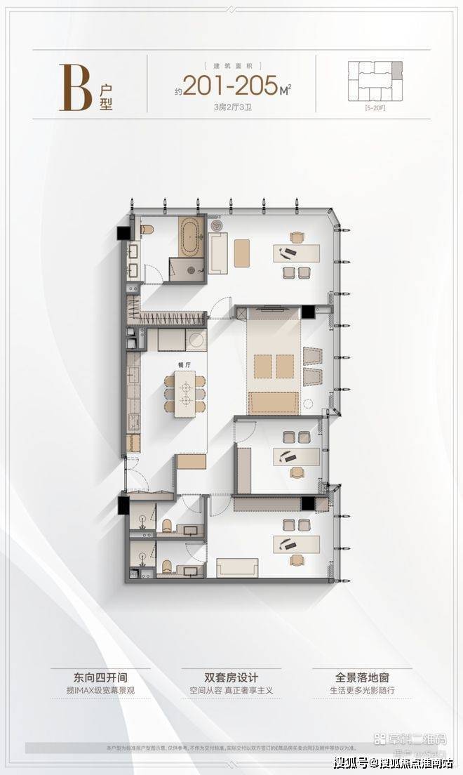 5️⃣户型优势:4.2米层高,全落地窗设计,多套房设计满足三代同堂