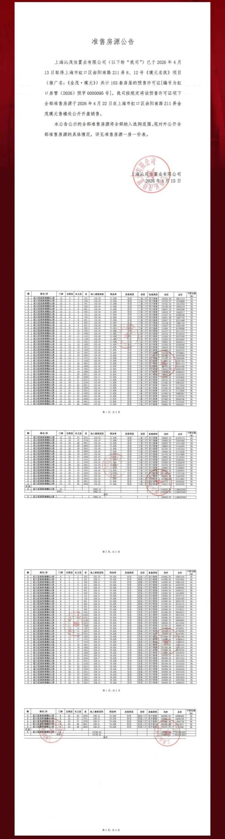 参考价格:备案均价约16.81万元/㎡,总价约1819万元起,四批次已于2026年4月15日启动认购。