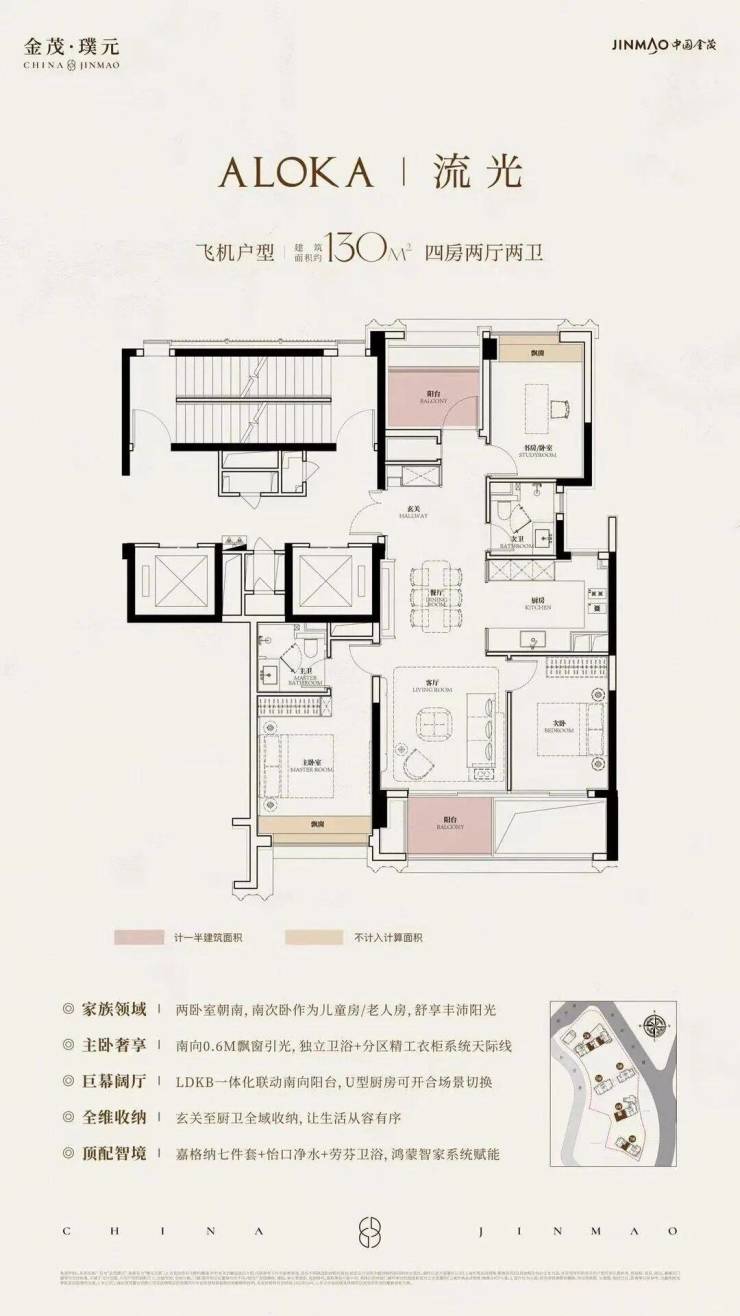 主力户型:建面约130–240㎡的三至四房,涵盖“流光130”“璞奕240”等系列,均为一梯一户设计,私密性极强。