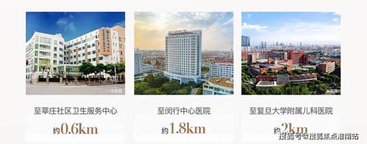 项目直线距离约3km范围内闵行中心医院、闵行中医医院、复旦大学附属儿科医院、莘庄社区卫生服务中心等优质医疗资源汇聚!