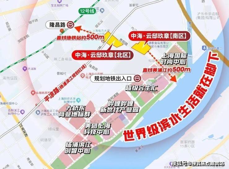 中海·云邸玖章距离地铁12号线隆昌路站直线 约500米,步行可达 ,这在杨浦滨江一众不靠轨交的项目中是非常难得的。进站后4站可达北外滩,7站陆家嘴,8站通达人广。
