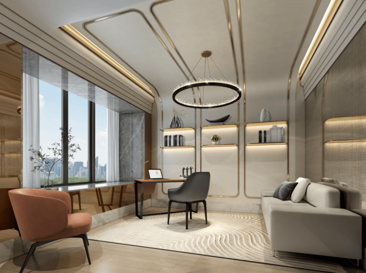- 270°转角采光:边套主卧突破传统飘窗局限,多一面观景面与采光面,如广角镜头延伸窗外河景与别墅区诗意。