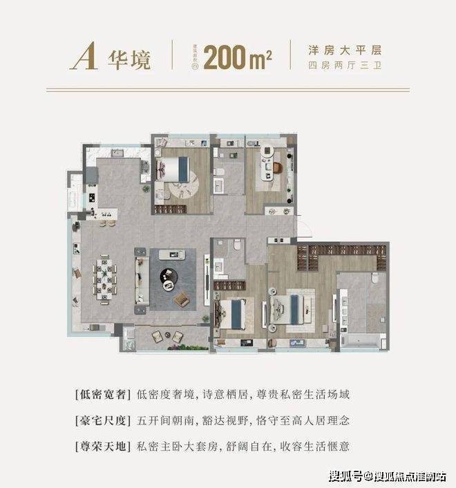 约200平方米大平层,奢侈的空间、全功能的户型,满足了对大宅的所有想象。