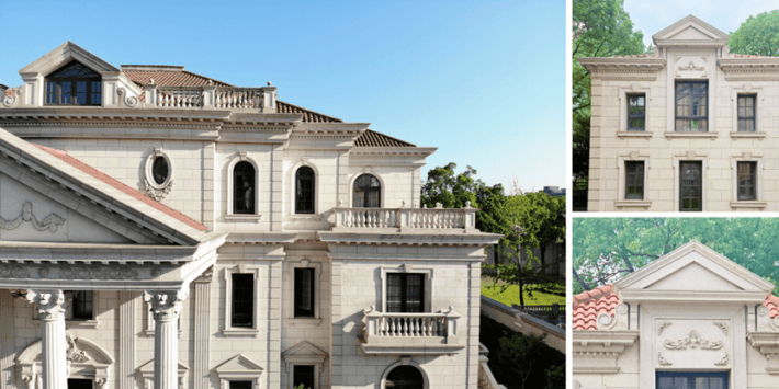 小楼不是附属,而是与主楼一体成型的“孪生兄弟”。与主楼同款外立面设计,雕花线条细腻流畅,门楣与窗楣造型呼应,屋顶坡度与色彩一致,让整体庄园气质浑然一体。不因“赠送”而降低标准,始终保持高规格。
