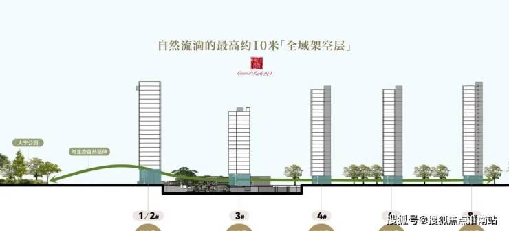 公园嵌入式浮岛社区:全域约 6.3米 -10 米架空设计,让公园绿意与山水诗韵自然邀约入室,打造公园嵌入式浮岛社区,呈现无界的社区风景。规划缤纷童趣、社区会客厅等多元架空层空间,于此开启生活的温暖缤纷。