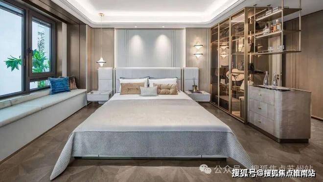 ·全景舱主卧套房:休憩、休闲、衣帽、卫浴有序布局,设有270°全景转角飘窗、休憩区、化妆柜、独卫、瞰景浴缸,将“主卧小家化”贯彻到底.
