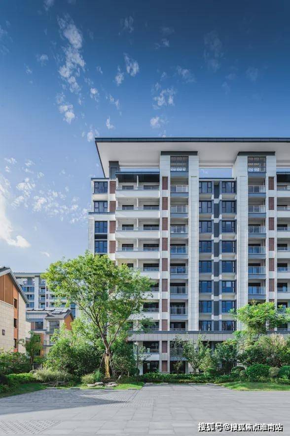 与园林景观对应,北辰观澜府联排樾墅采用了新中式建筑立面:大面积偏暖色干挂石材及铝板,兼具耐固性与美观度。而整个苏州只有极少数豪宅楼盘采用干挂石材作为小区外立面,足以看出北辰观澜府在产品打造上不惜成本的决心。