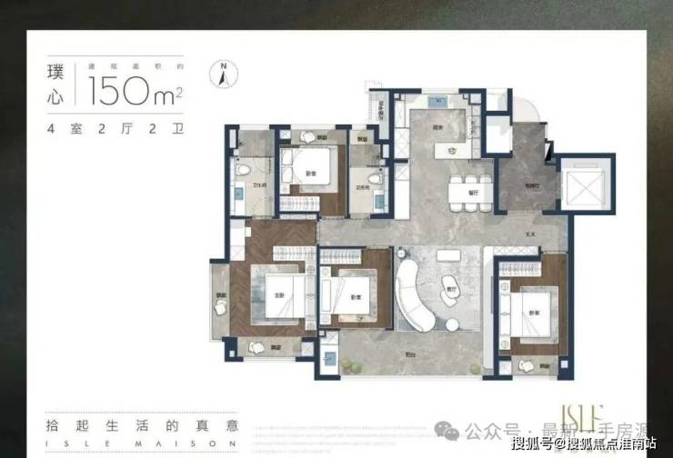 璞心 | 建筑面积约150㎡四室两厅两卫户型