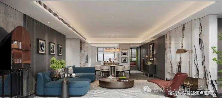【中央会客厅】LDKB一体化设计,厨房、餐厅、客厅、阳台彼此联通,客厅通铺至阳台,实现空间场景的多重变化,深化家人间的互动交流。