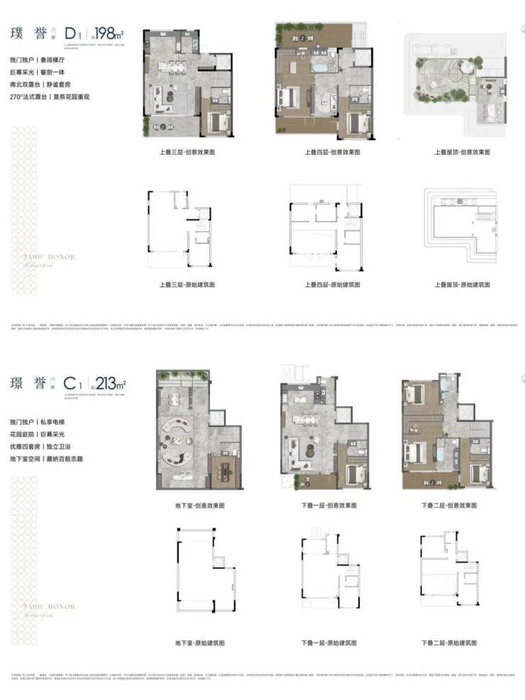 ·叠加——上叠 建面约198㎡、下叠 建面约213㎡;