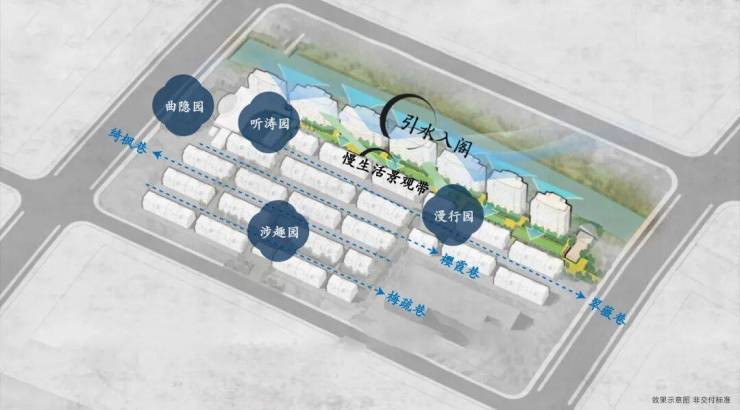 ※四巷|融入计成《园冶》中记载的造园植物,以春樱、夏薇、秋枫、冬梅为笔,四时花树植栽交织,勾勒街巷四季鲜活肌理——樱霞巷·翠薇巷·绮枫巷·梅疏巷