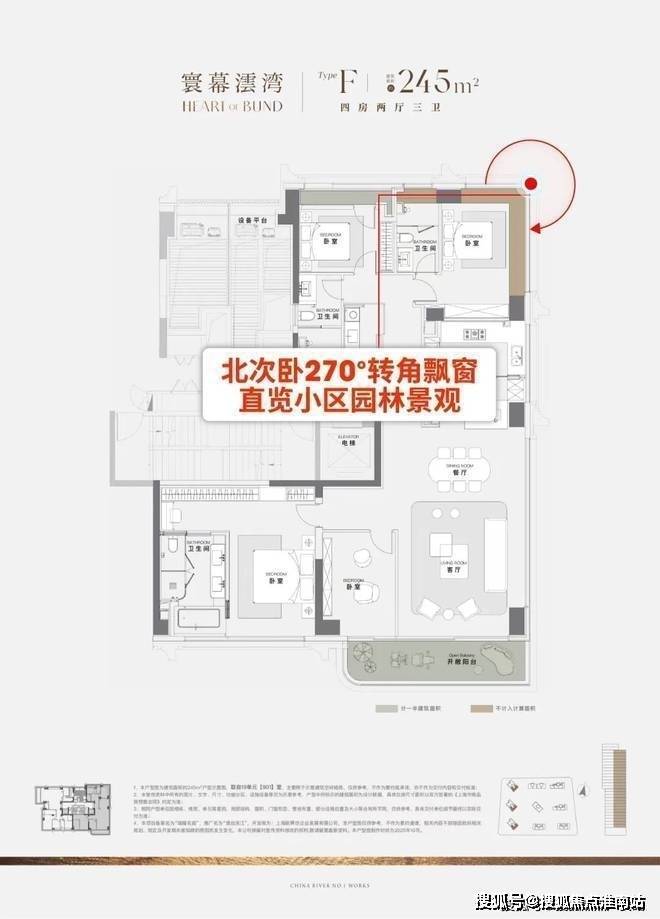 ④三卧全尺度奢适,主卧临窗浴缸瞰江!X空间定制方案可选,实现多场景布置!