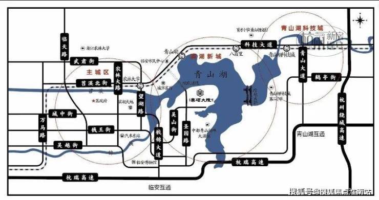 距离临安互通约2km、距离地铁16号线青山湖站约3km、项目门口就有公交车站 805、807 出行非常方便。