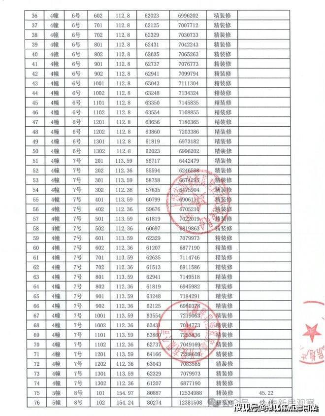 上期一房一价表如下:
