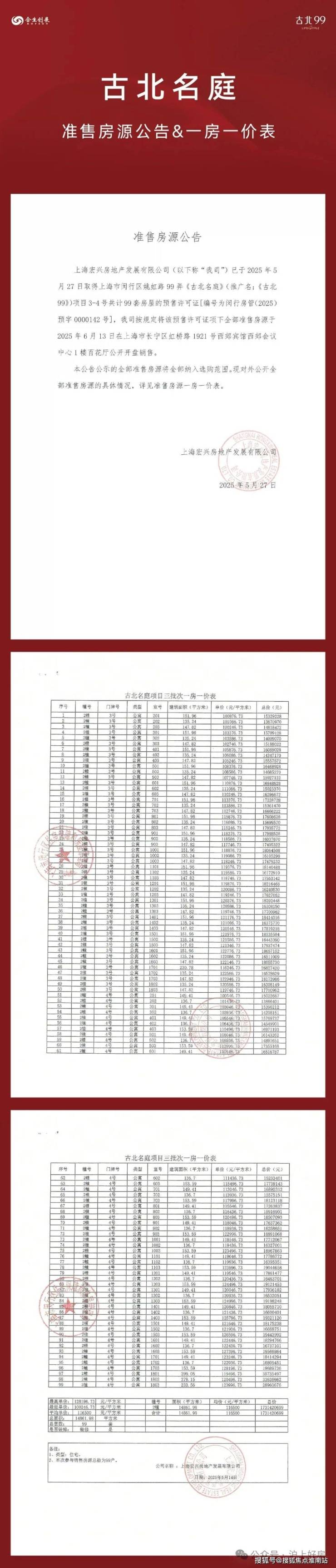 据悉,【古北99】加推2号楼,合计99套房源:包括建面约135-154㎡3-4房,建面建面约230-299㎡复式房。均价约为11.65万元/㎡,即将入市,前期少量房源可直接认购!