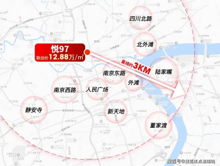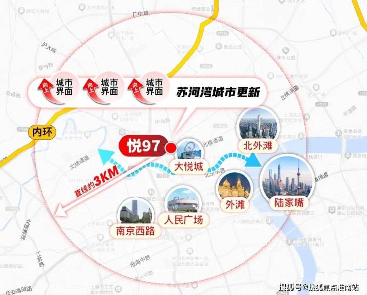 悦97售楼处电话☎:400-998-9694✔✔ · 直线距离人民广场约4.5公里的沪太路项目预计14万/㎡左右;