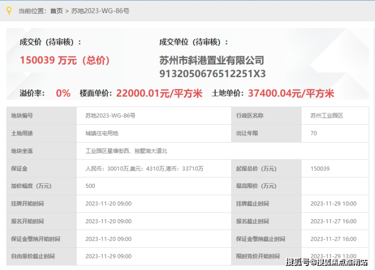 建屋·新棠玥,即斜港置业斜塘86号地块项目,即,苏地2023-WG-86号地块项目, 位于工业园区星塘街西、独墅湖大道北,是2023年11月29日,斜港置业以底价150039万元竞得, 成交楼面价22000元/平。