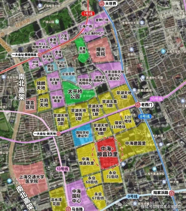 中海・顺昌玖里雄踞上海真正的城央烫金地段 —— 黄浦区新天地 。这里是上海的心脏地带,是城市繁华与历史底蕴的交融之所。周边汇聚了上海顶级的商业、文化、娱乐资源,成为无数人向往的生活主场。