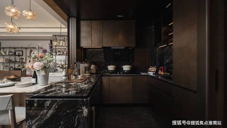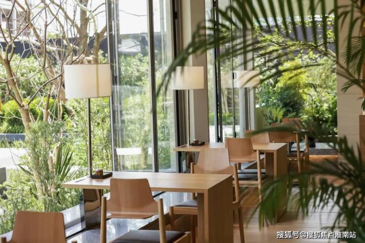 有效的将河岸原生水杉等自然美景融入,被自然包裹的阳台以精致现代的花砖铺设,搭配吧台,卡座,打造出繁入静的城市滨水一角。
