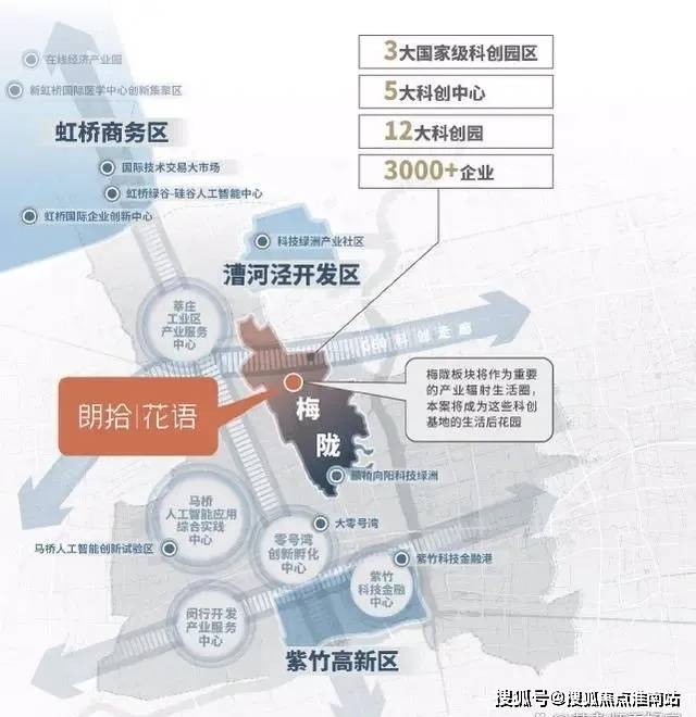朗拾花语所在的梅陇板块距离中环线直线约2.8km,这一点比同级别的各板块都近,甚至比约800万级的莘庄七宝都近。