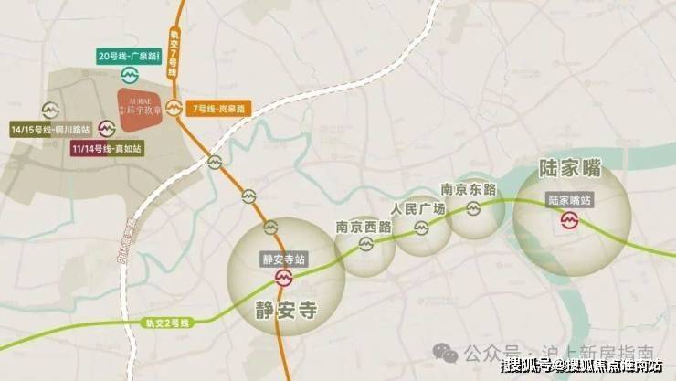 五轨交汇:7、11、14、15、20号线(在建中),4站静安寺,5站中山公园、7站人民广场,半小时内覆盖上海核心商圈