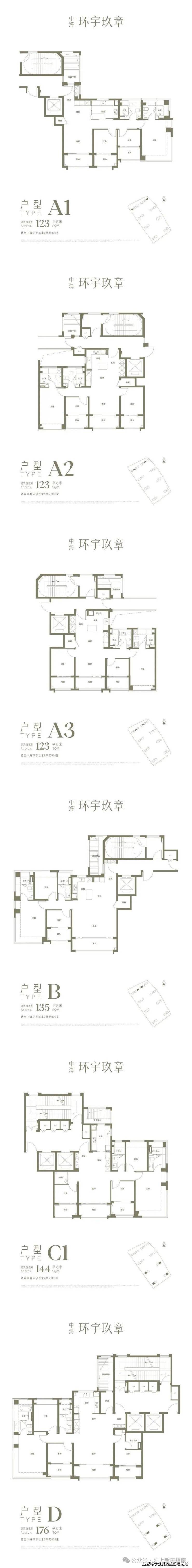 产品力强:主力户型123-176㎡,层高3.15-3.3米,多阳台设计,得房率高。