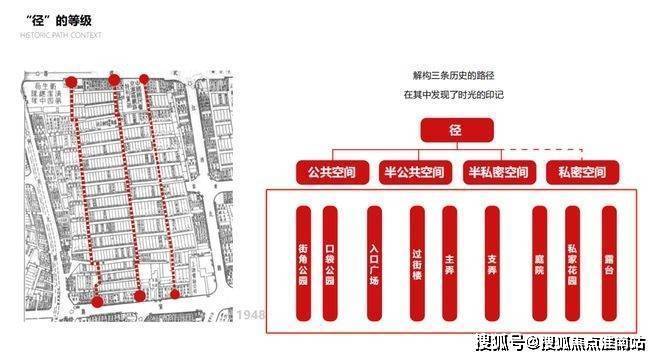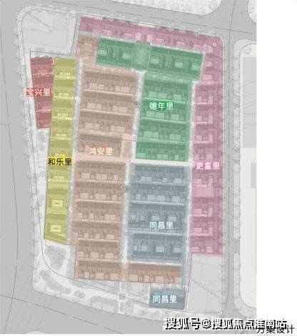 另外,从组团上看,分为历史保护组团、内部组团、沿街组团: