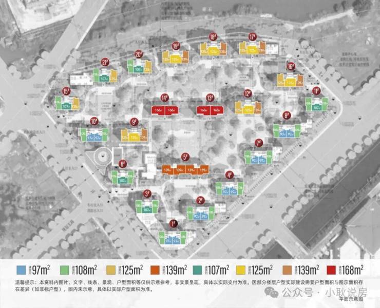 项目规划建设21幢住宅,面积约97-168m²,