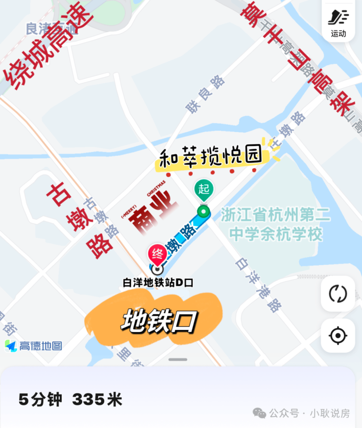 地铁🚇:2号线白洋站约335米,无缝换乘4,5,10号等8条地铁线路,通达杭城。