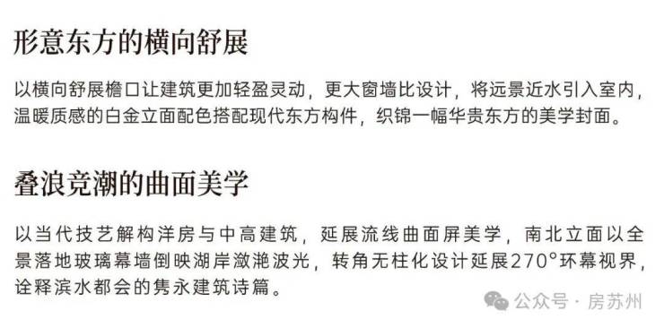 凤起冕旒|东方礼序的当代演绎;主入口门头以古代礼冠“冕旒”为灵感,采用现代设计语汇,构筑约85米“凤起冕旒”华贵门仪。景泰蓝垂幕「旒珠振玉」镶嵌其间,既呼应传统东方礼制,亦致敬苏州的时代封面与源点气质。门庭景观取罗汉松、朴树等珍稀树种,将奢石、水景与自然精巧融合,构筑一方承袭千年盛韵的尊荣之境。