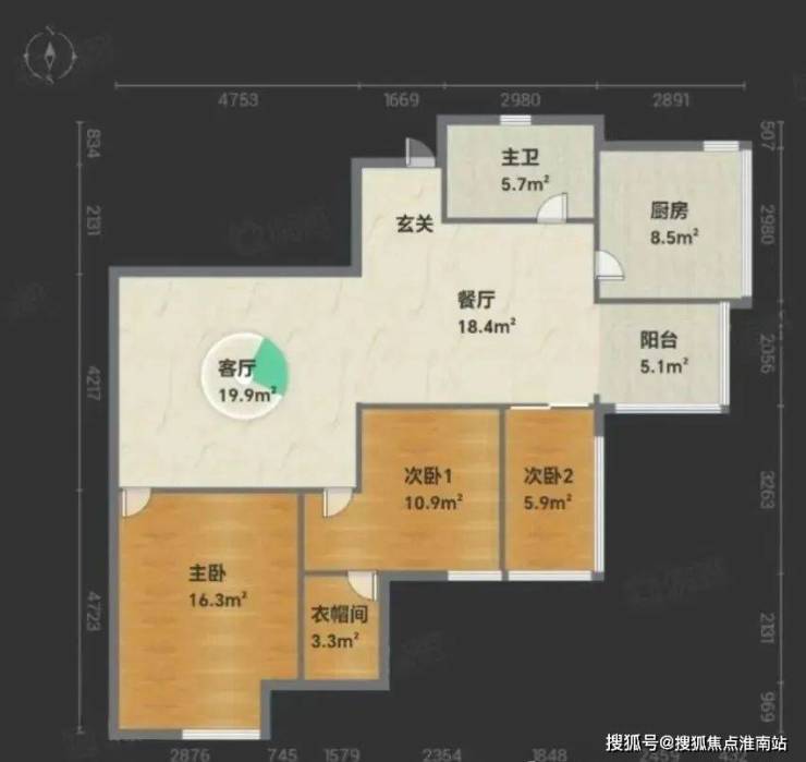 117.19平户型:精致全明—3房2厅1厨1卫1阳台