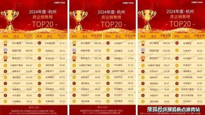荣登2024年1-10月杭州房地产全口径榜、流量榜